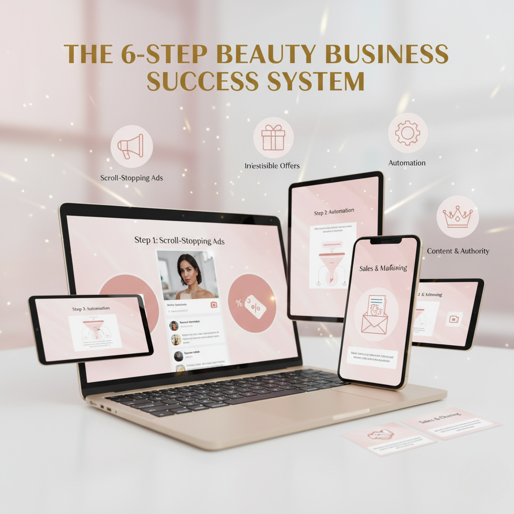 The 6‑Step Beauty Business Success System is the only step‑by‑step framework designed specifically for beauty professionals who want to attract more clients using simple, high‑converting marketing strategies.